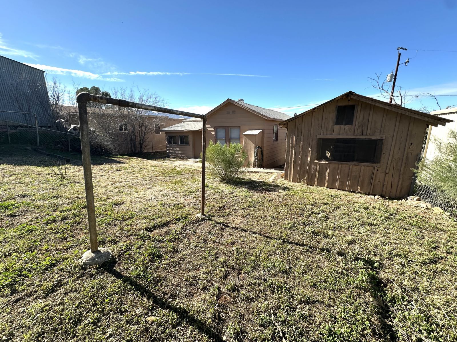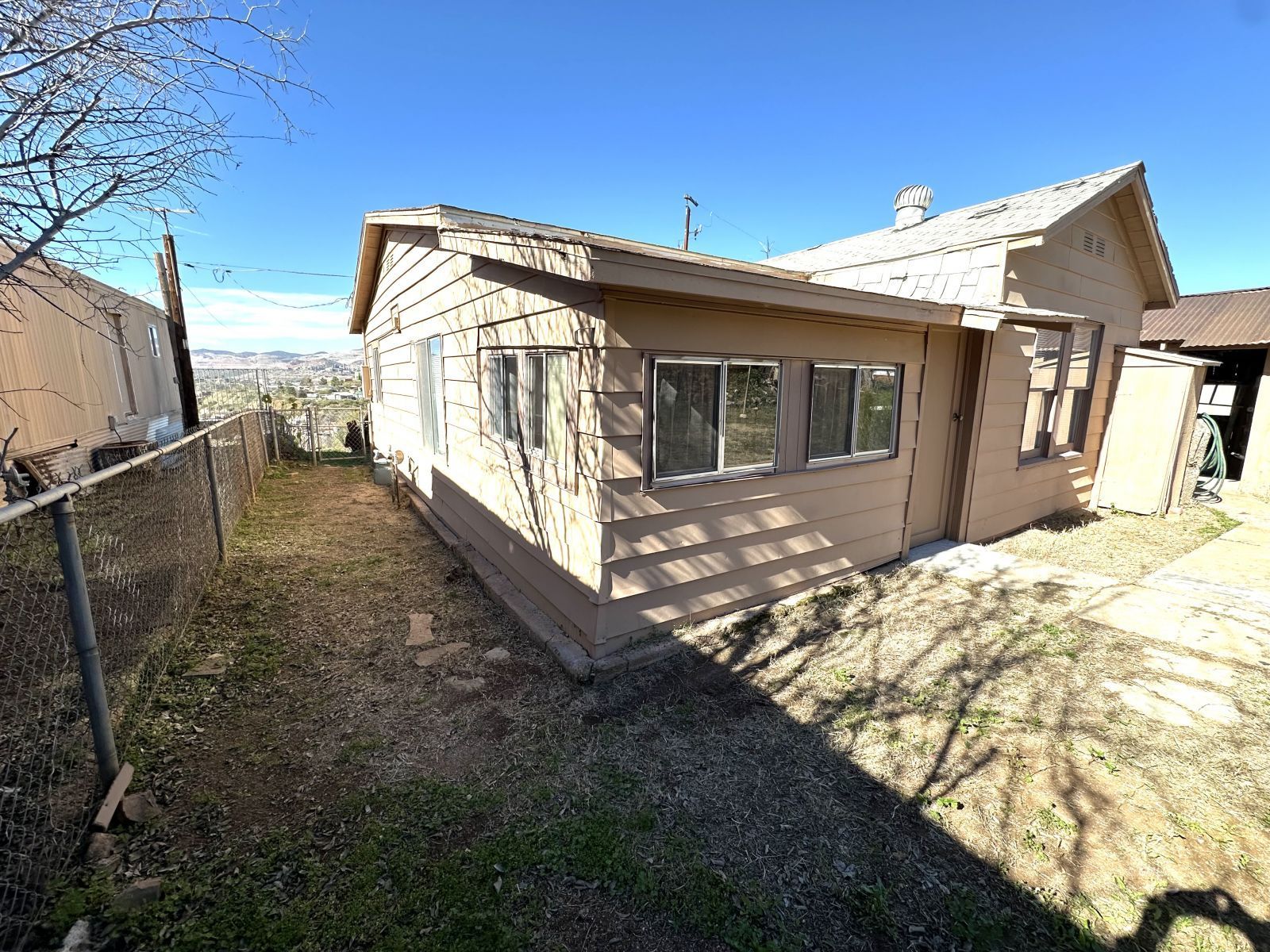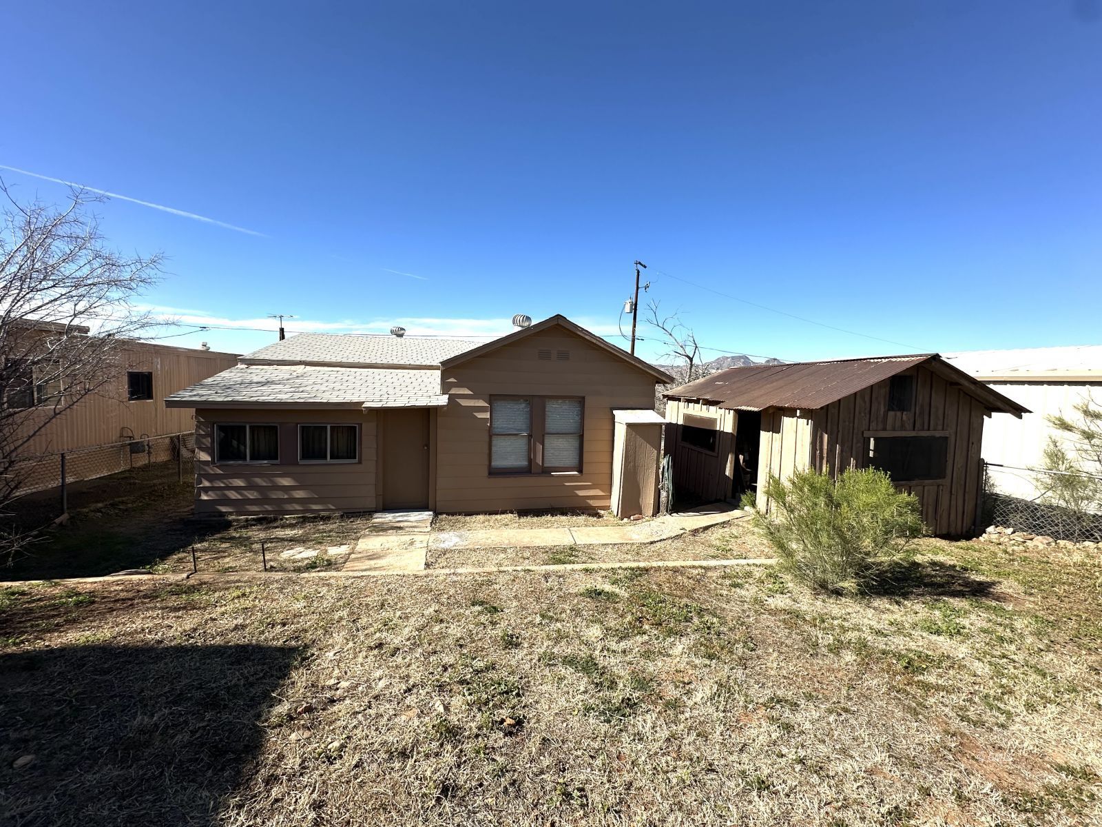 Great starter home or investment property with lots of opportunities. This cozy home has 2 bedrooms and 1 full bathroom which has been recently updated. The kitchen has lots of cabinetry and a gas stove. There have been several updates to the home including on demand electric water heater, updates to the plumbing and electric as well as recently painted exterior. There is a separate room that could be used for dining or would make a great pantry. There is a large storage shed on the side of the home and there is off street parking. Yard is partially fenced and you have great views of Sleeping Beauty mountain while sitting on your front porch.